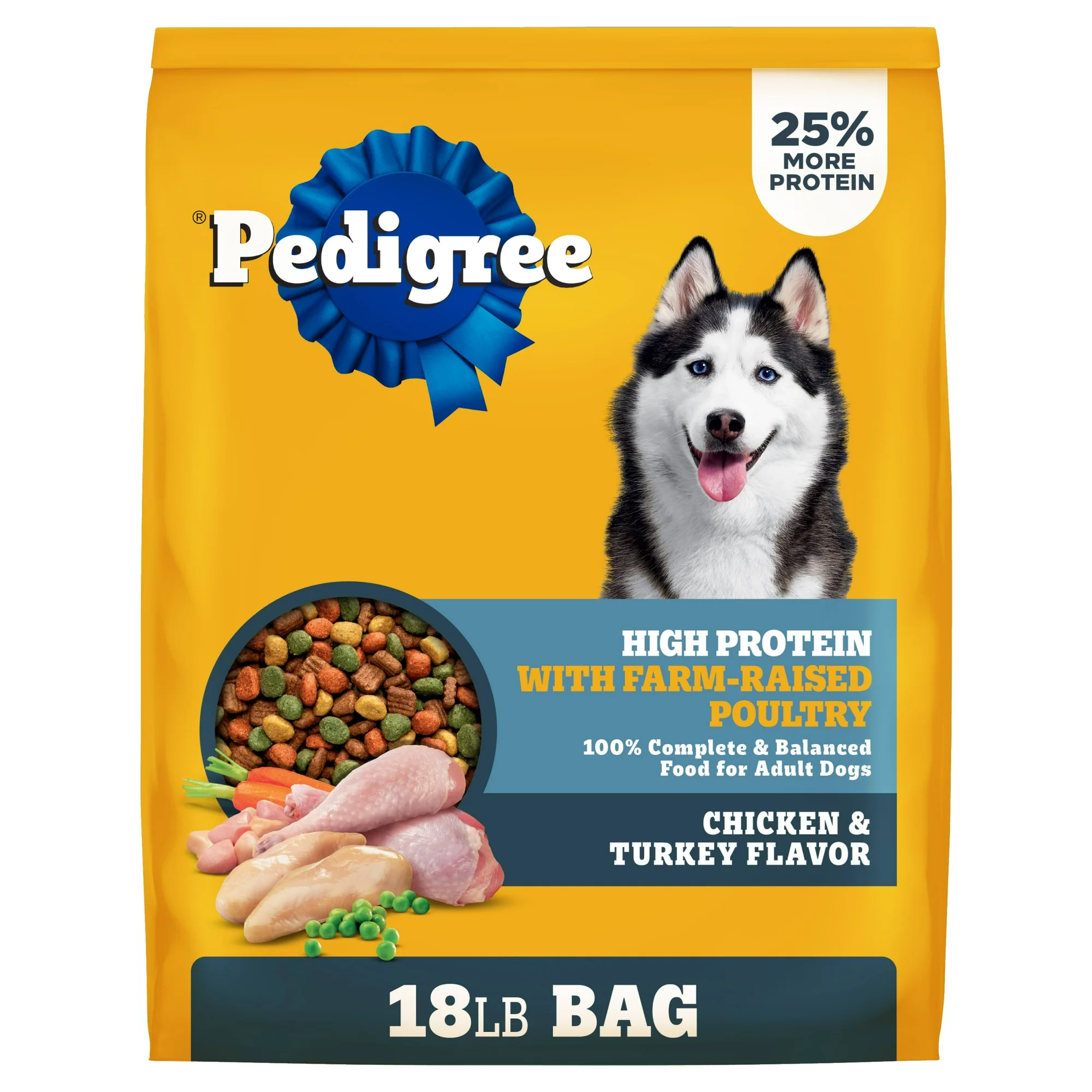 Fuel your dog’s active lifestyle with Pedigree High Protein Adult Dry Dog Food made with chicken and turkey flavor. Formulated to support strong muscles, it delivers the protein dogs need for energy and vitality. The crunchy kibble helps clean teeth and promote healthy gums. Enriched with essential vitamins and minerals for overall wellness. Ideal for adult dogs of all breeds and sizes. A nutritious and satisfying daily meal your dog will love.
